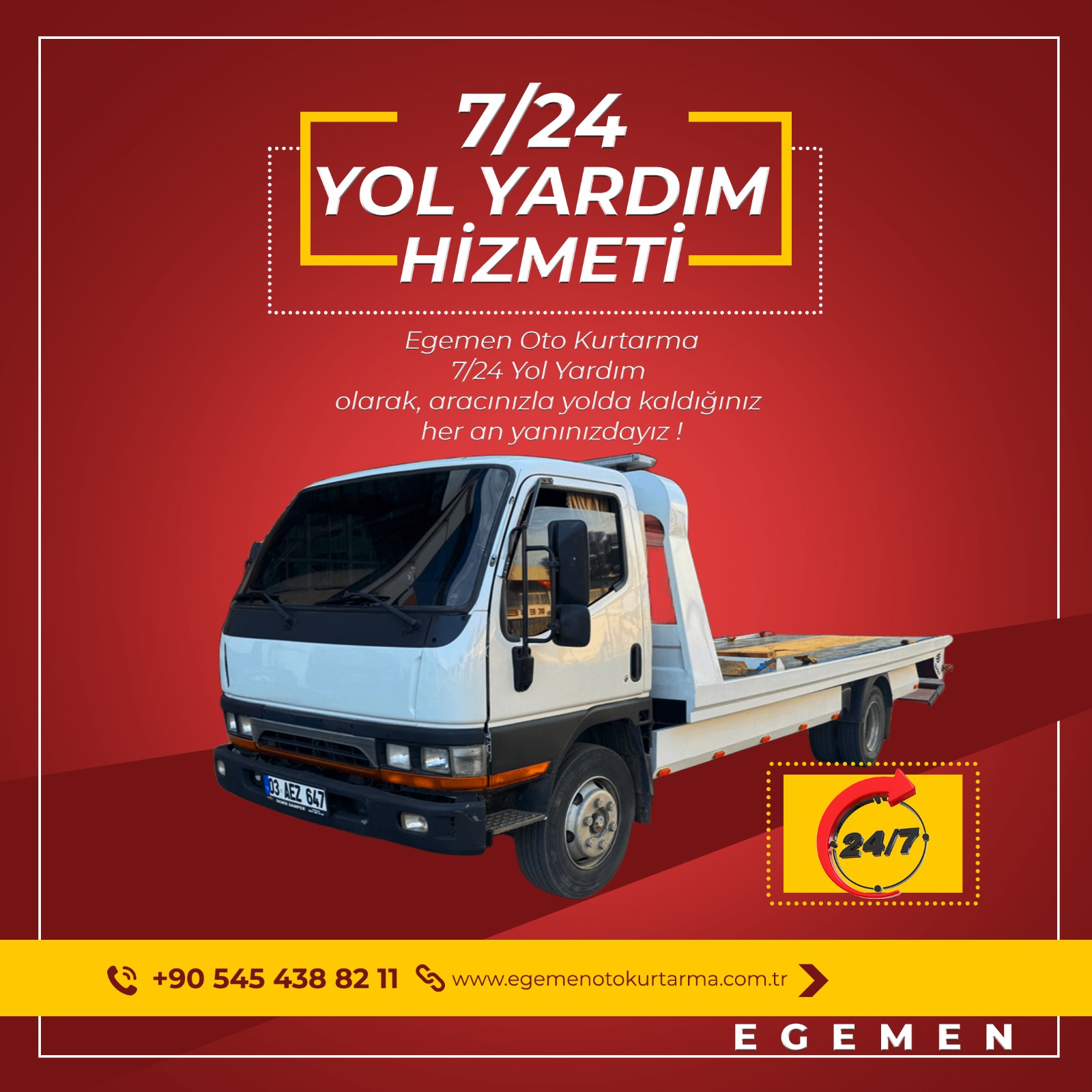 Egemen Oto Kurtarma 7/24 Yol Yardım olarak, aracınızla yolda kaldığınız her an yanınızdayız !
